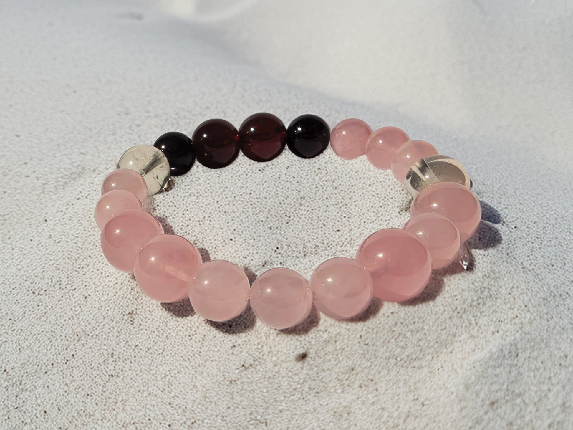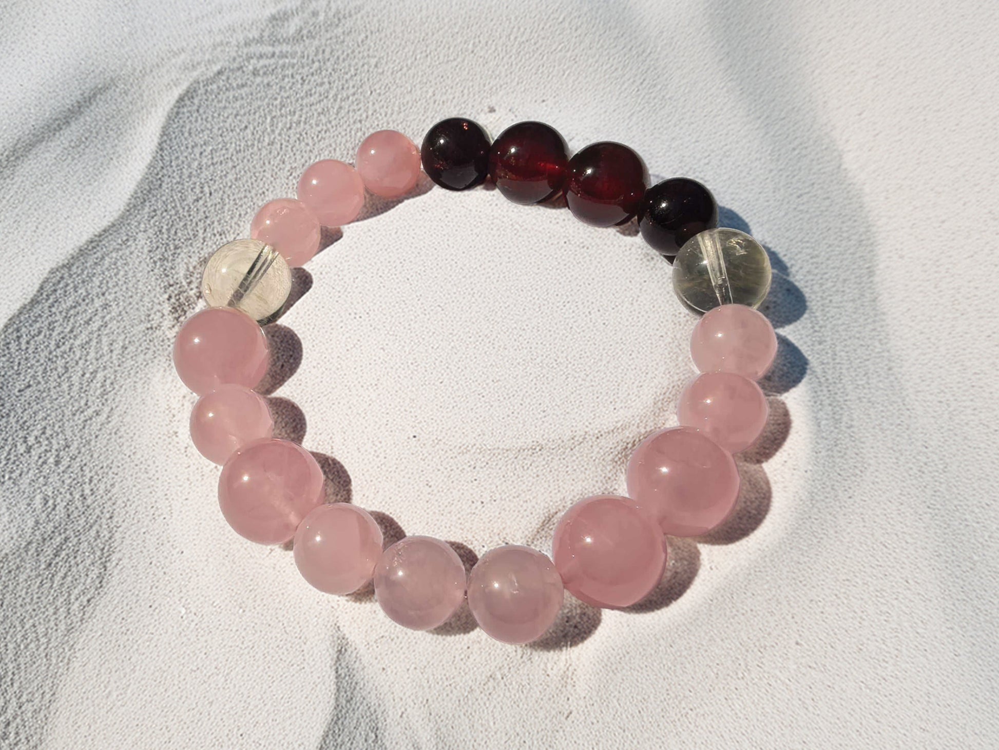 Rose Quartz, Orange Garnet, Deep Red Garnet, Lemon Quartz